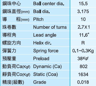 鋼珠直徑(mm)?????????????????? Ball dia.????????????????????????????????????? 3.175